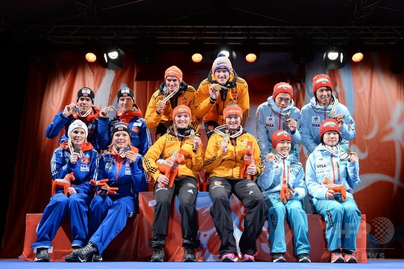 【2月23日 AFP】ノルディックスキー世界選手権(Nordic World Ski Championships 2015)は22日、スウェーデンのファールン(Falun)でジャンプ混合団体が行われ、日本は銅メダルを獲得した。