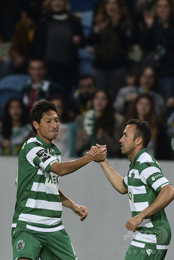 スポルティングは後半7分、田中順也(Junya Tanaka)が先制点を決めると、同24分にナニ(Luis Cunha aka Nani)が追加点を挙げた。(c)AFP