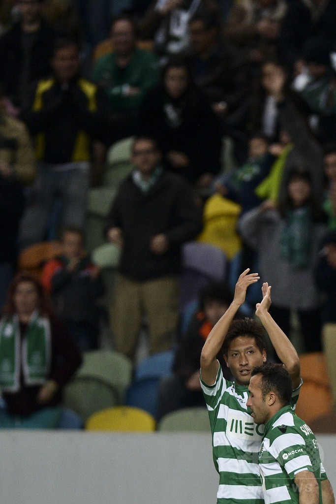 スポルティングは後半7分、田中順也(Junya Tanaka)が先制点を決めると、同24分にナニ(Luis Cunha aka Nani)が追加点を挙げた。(c)AFP