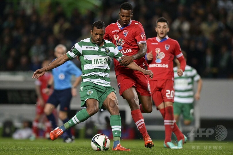 スポルティングは後半7分、田中順也(Junya Tanaka)が先制点を決めると、同24分にナニ(Luis Cunha aka Nani)が追加点を挙げた。(c)AFP