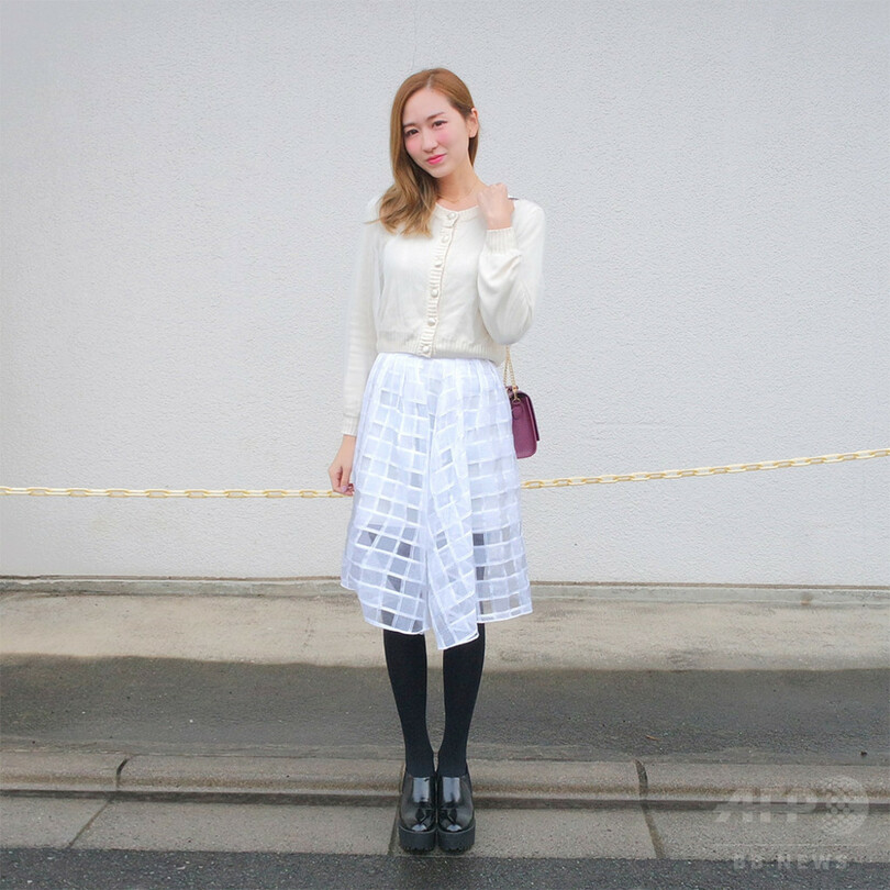 バッグの上品なデザインに合わせてホワイトアイテムをコーディネートし、グッドガールなイメージに。