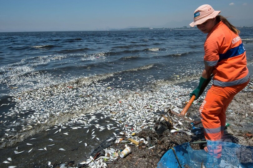 市清掃局によると、リオデジャネイロ五輪でセーリング競技が行われるグアナバラ湾(Guanabara Bay)では25、26日の2日間で計12.3トンの小さな銀色の魚の死骸が回収された。