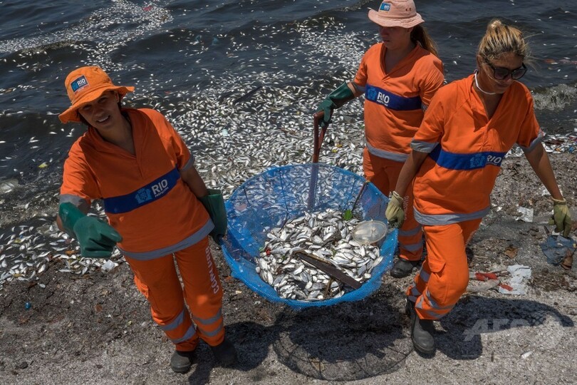 市清掃局によると、リオデジャネイロ五輪でセーリング競技が行われるグアナバラ湾(Guanabara Bay)では25、26日の2日間で計12.3トンの小さな銀色の魚の死骸が回収された。
