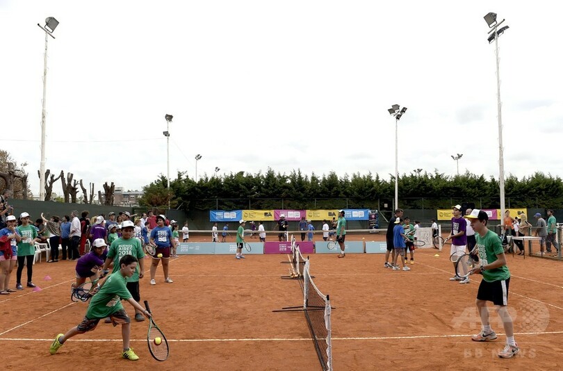 6歳から15歳の子ども300人が使用するラケットと設備は、すべて国際テニス連盟(ITF)から提供されたものだという。(c)AFP/Sonia AVALOS