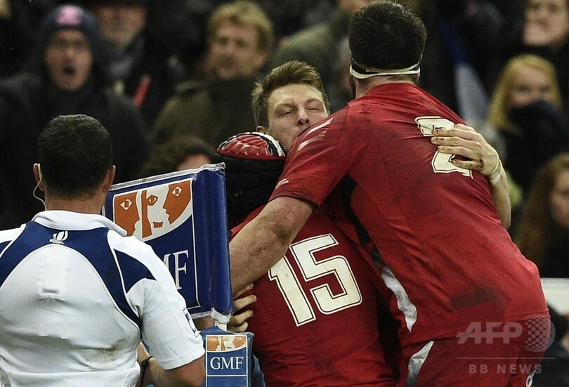 ハーフペニーは後半にも3つのペナルティーキックを成功させて合計15得点を記録すると、ダン・ビガー(Dan Biggar)のトライで突き放したウェールズは、ブリス・ドゥラン(Brice Dulin)のトライとロペスのコンバージョンでフランスに詰め寄られながらも、最後は逃げ切った。(c)AFP