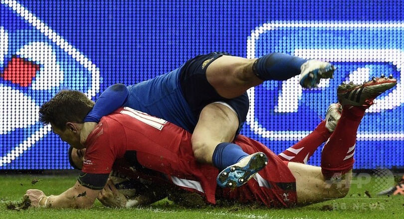 ハーフペニーは後半にも3つのペナルティーキックを成功させて合計15得点を記録すると、ダン・ビガー(Dan Biggar)のトライで突き放したウェールズは、ブリス・ドゥラン(Brice Dulin)のトライとロペスのコンバージョンでフランスに詰め寄られながらも、最後は逃げ切った。(c)AFP