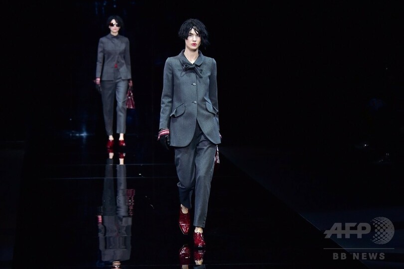 2月27日にはジョルジオ・アルマーニ(Giorgio Armani)が手がける「エンポリオ アルマーニ(Emporio Armani)」が新作を発表した。(c)AFP