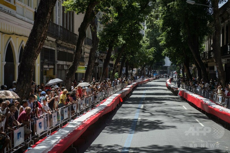 【3月2日 AFP】ブラジル・リオデジャネイロ(Rio de Janeiro)市で、1565年の同市誕生からちょうど450年となる1日、長さ450メートルの巨大ケーキが市民たちに振る舞われた。