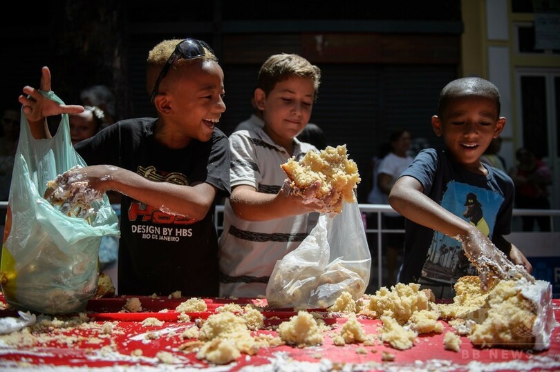 【3月2日 AFP】ブラジル・リオデジャネイロ(Rio de Janeiro)市で、1565年の同市誕生からちょうど450年となる1日、長さ450メートルの巨大ケーキが市民たちに振る舞われた。