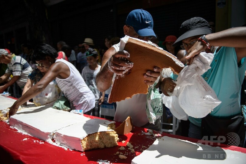 【3月2日 AFP】ブラジル・リオデジャネイロ(Rio de Janeiro)市で、1565年の同市誕生からちょうど450年となる1日、長さ450メートルの巨大ケーキが市民たちに振る舞われた。