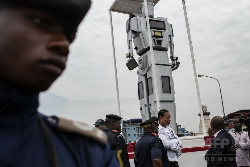 【3月4日 AFP】コンゴ民主共和国の首都キンシャサ(Kinshasa)で3日、交通渋滞を緩和するために最近設置された人型ロボット3体の公式のお披露目式が行われた。ロボットには交通状況を記録するカメラが搭載され、記録された情報は市内の交通管制室にリアルタイムで送信される。(c)AFP