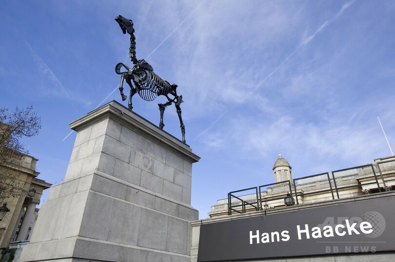 「馬の骸骨」の彫刻、英ロンドン・トラファルガー広場に登場