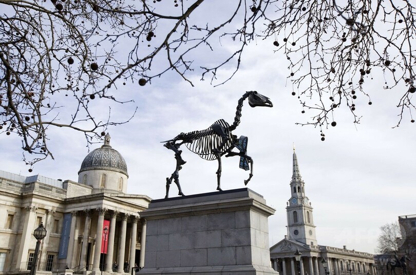 「馬の骸骨」の彫刻、英ロンドン・トラファルガー広場に登場