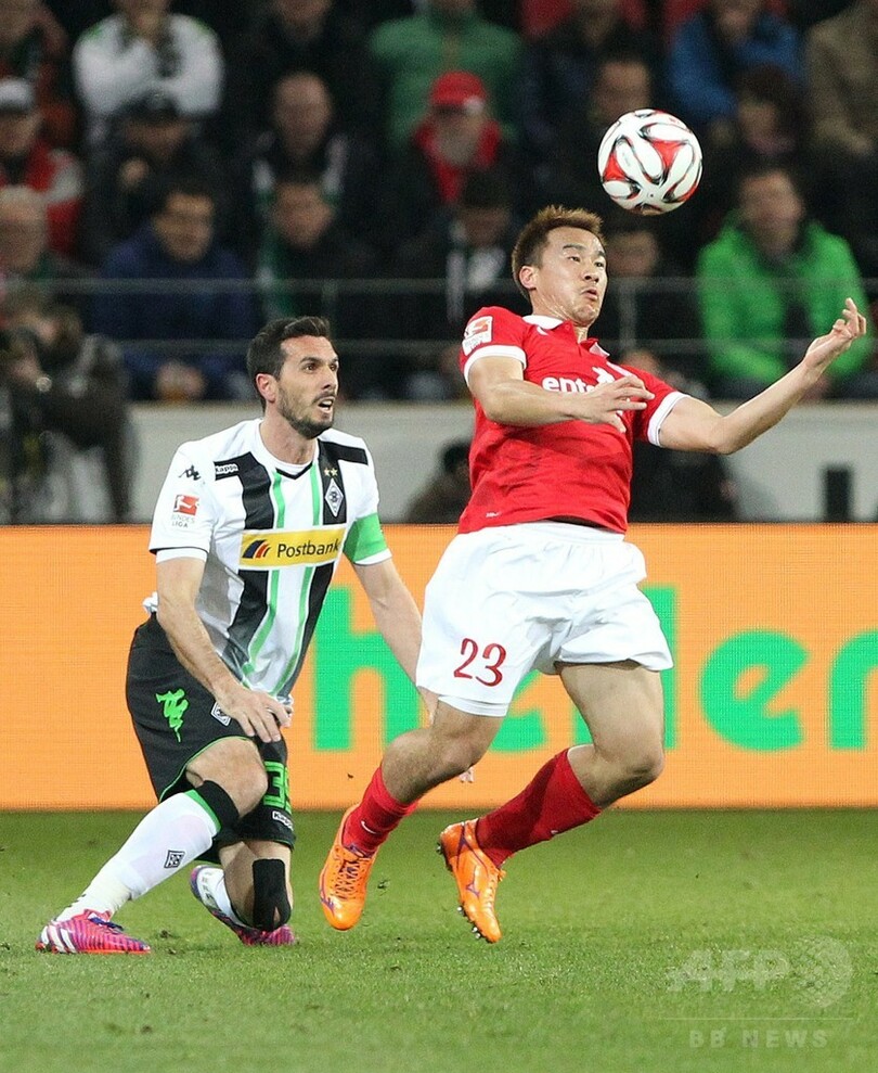 ラファエウ(Raffael Caetano de Araujo)の2得点で0-2とリードを許したマインツは、後半28分にヨハネス・ガイス(Johannes Geis)が1点を返すと、その4分後に岡崎慎司(Shinji Okazaki)がヘディングシュートで同点とし、欧州チャンピオンズリーグ(UEFA Champions League)の出場権を狙う3位メンヘングラッドバッハから勝ち点1を手にした。(c)AFP