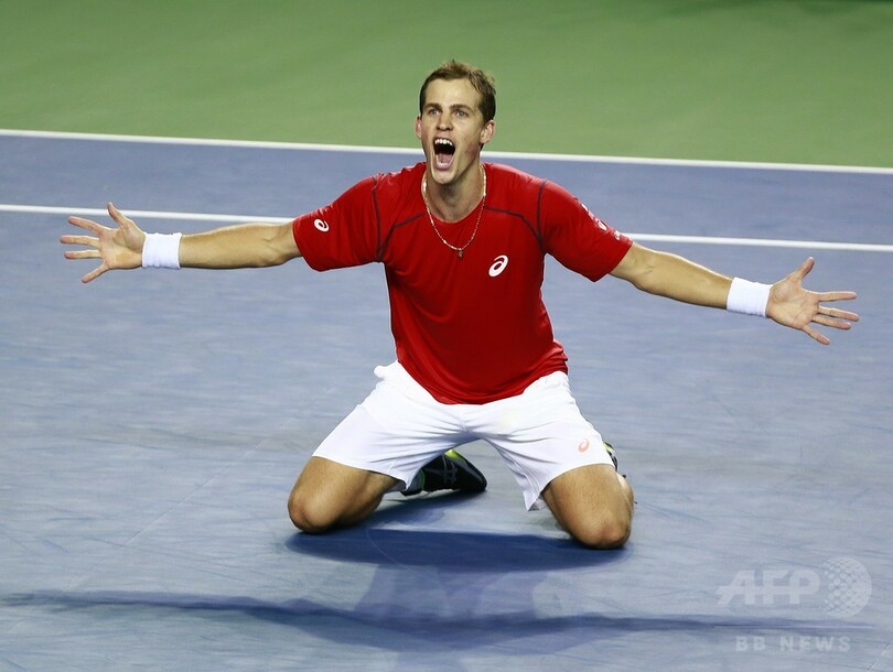 カナダは準々決勝で、前年王者ながらロジャー・フェデラー(Roger Federer)とスタン・ワウリンカ(Stan Wawrinka)を欠いたスイスを下したベルギーと対戦する。(c)AFP