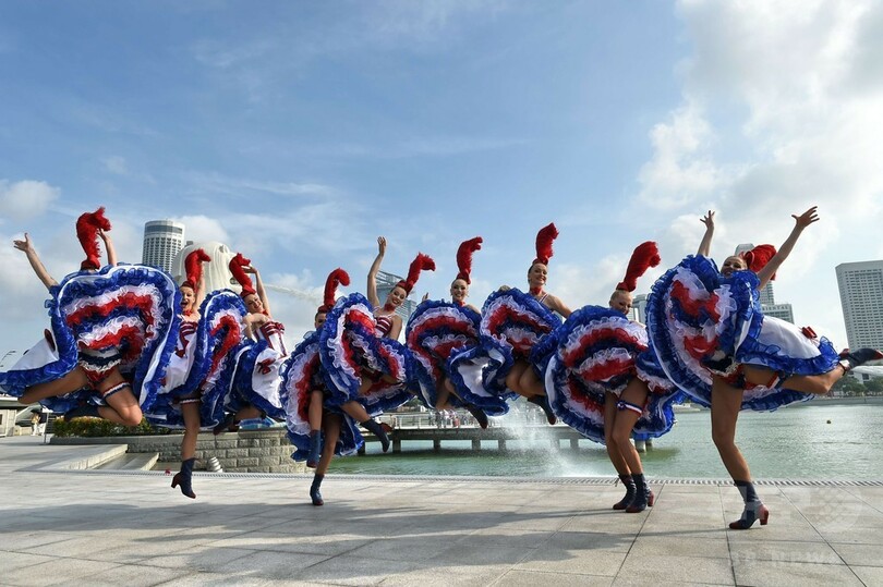 【3月9日 AFP】フランス・パリ(Paris)の老舗キャバレー「ムーランルージュ(Moulin Rouge)」の踊り子たちが9日、シンガポールの象徴として知られる「マーライオン(Merlion)」像の前で記念撮影を行った。
