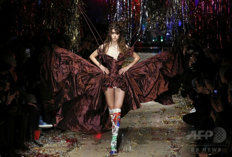 6日には、「ヴィヴィアン・ウエストウッド ゴールドレーベル(Vivienne Westwood Gold Label)」が新作を発表した。(c)AFP