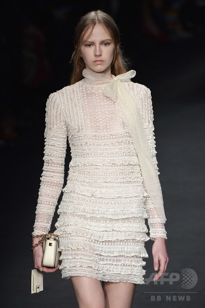 10日には、マリア・グラツィア・キウリ(Maria Grazia Chiuri)とピエールパオロ・ピッチョーリ(Pierpaolo Piccioli)が手がける「ヴァレンティノ(Valentino)」が新作を発表した。(c)AFP