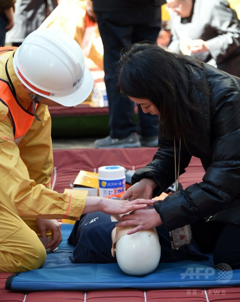 ニュース 社会 六本木ヒルズで防災訓練、東日本大震災から4年 2015年3月11日 15:02 発信地:東京 [ アジア・オセアニア 東京 ] このニュースをシェア ‹ › ❮ 1/8 ❯ 東京都港区の六本木ヒルズで行われた防災訓練に参加し、救命処置の方法を学ぶ女性(2015年3月11日撮影)(c)AFP/TOSHIFUMI KITAMURA 画像作成中 ! 【3月11日 AFP】東日本大震災の発生から4年となった11日、東京都港区の六本木ヒルズ(Roppongi Hills)では約1000人が参加して地震を想定した防災訓練が行われた。(c)AFP 社会 一覧へ> メディア・報道関係・法人の方向け 写真・動画 購入のお問合せ>
