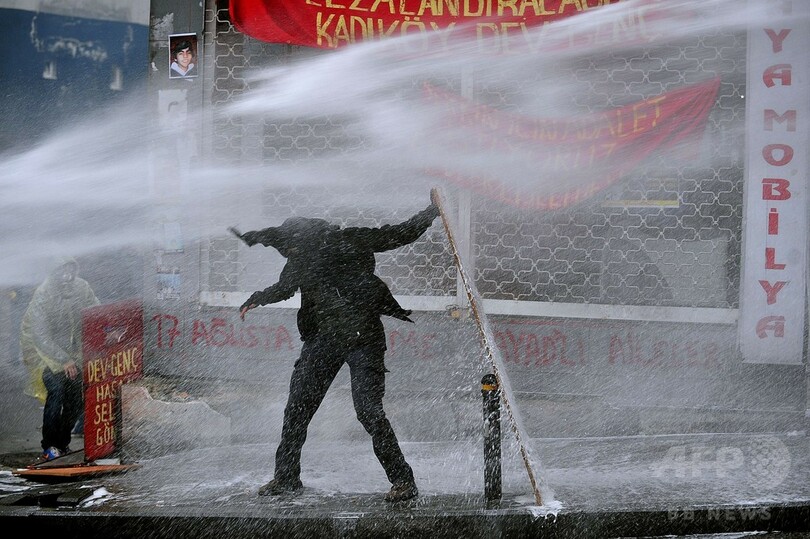 衝突が起きたのはイスタンブールのオクメイダヌ(Okmeydani)地区で、現場のAFPカメラマンによると、デモの参加者の一部が花火や火炎瓶を投げつけ、警官隊が放水や催涙ガスで応酬した。