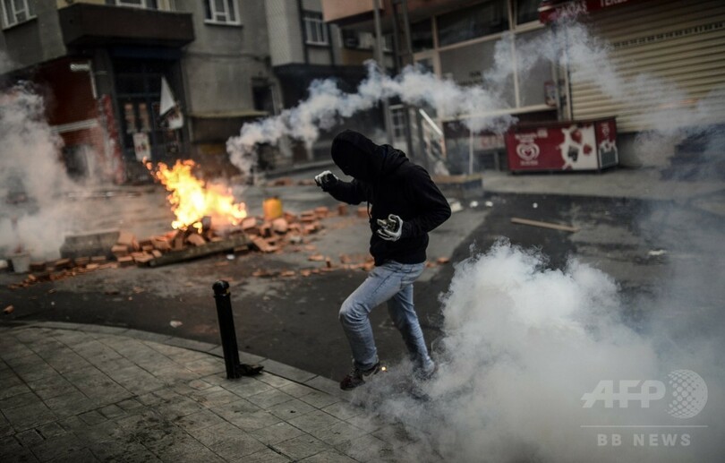 衝突が起きたのはイスタンブールのオクメイダヌ(Okmeydani)地区で、現場のAFPカメラマンによると、デモの参加者の一部が花火や火炎瓶を投げつけ、警官隊が放水や催涙ガスで応酬した。