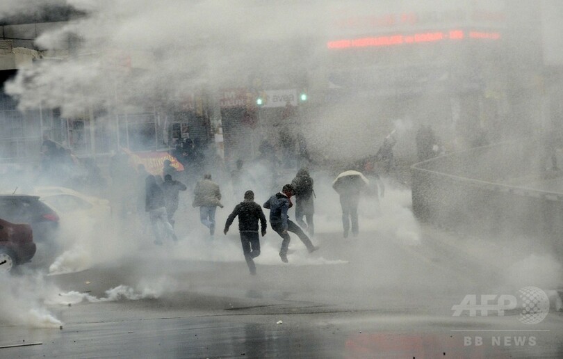 衝突が起きたのはイスタンブールのオクメイダヌ(Okmeydani)地区で、現場のAFPカメラマンによると、デモの参加者の一部が花火や火炎瓶を投げつけ、警官隊が放水や催涙ガスで応酬した。