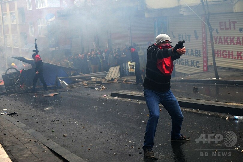 衝突が起きたのはイスタンブールのオクメイダヌ(Okmeydani)地区で、現場のAFPカメラマンによると、デモの参加者の一部が花火や火炎瓶を投げつけ、警官隊が放水や催涙ガスで応酬した。