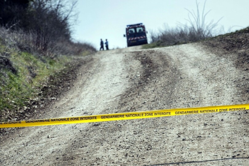 宝石を運んでいた輸送車2台は、現場の料金所からさほど遠くない場所に乗り捨てられているのが発見された。いずれも焼けこげ、1台は完全に破壊されていた。警察はヘリコプターも動員し、広範囲にわたって周辺を捜査している。(c)AFP/Gregory Danel with Pauline Talagrand in Paris