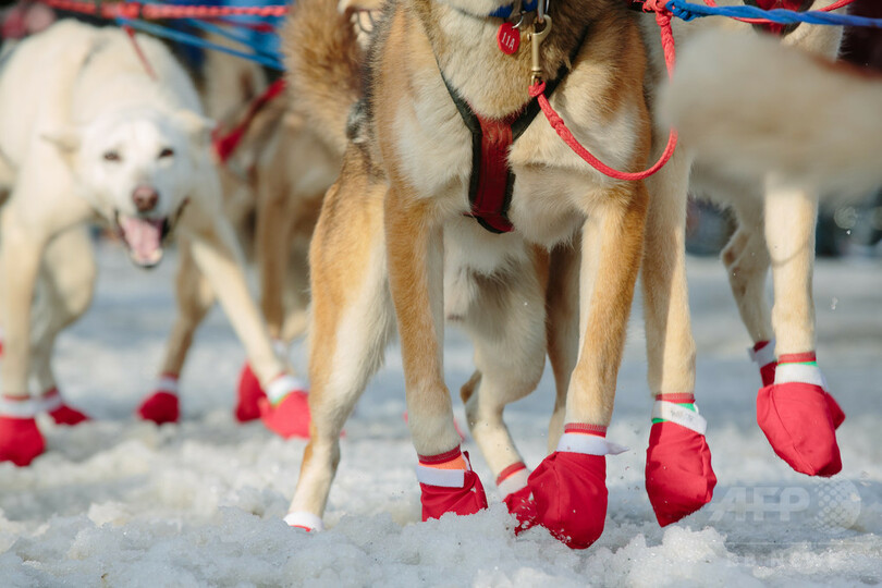 アイディタロッド犬ぞりレースは、アラスカ州中南部のアンカレッジ(Anchorage)を出発し、同州西部ベーリング海(Bering Sea)沿岸のノームにあるゴールを目指す。目的は、犬ぞり文化とアラスカン・ハスキー、さらにスワード(Seward)─ノーム間の歴史あるアイディタロッド・トレイル(Iditarod Trail)の保存と保護。主催者側のウェブサイトによると、レースには険しい山道や凍った川、深い森、荒涼としたツンドラ地帯、風が吹きつける氷点下の海岸沿いのトレイルなどが含まれている。(c)DPA/AFPBB News