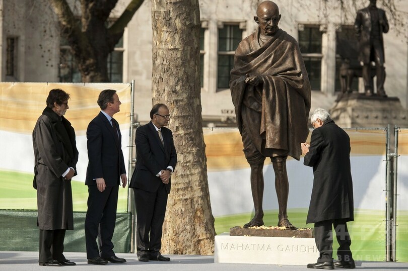 【3月15日 AFP】英ロンドン(London)の英国会議事堂前にある広場「パーラメント・スクエア(Parliament Square)」で14日、インド独立の父、マハトマ・ガンジー(Mahatma Gandhi)の銅像の除幕式が行われた。