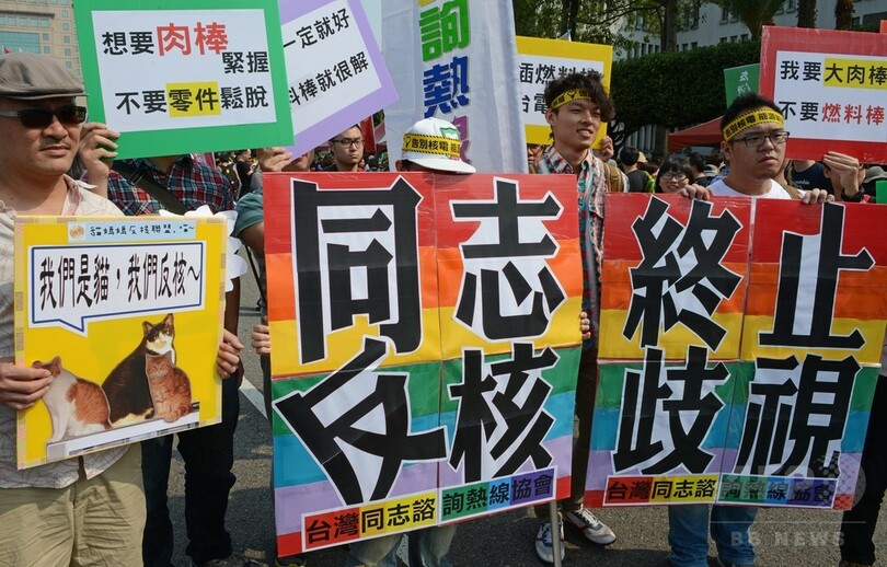 台北(Taipei)市中心部には「核エネルギーに別れを告げよう」、「原子力はいらない」などの言葉がプリントされたTシャツを着た多くの人たちが集まり、プラカードを掲げて反原発を訴えた。