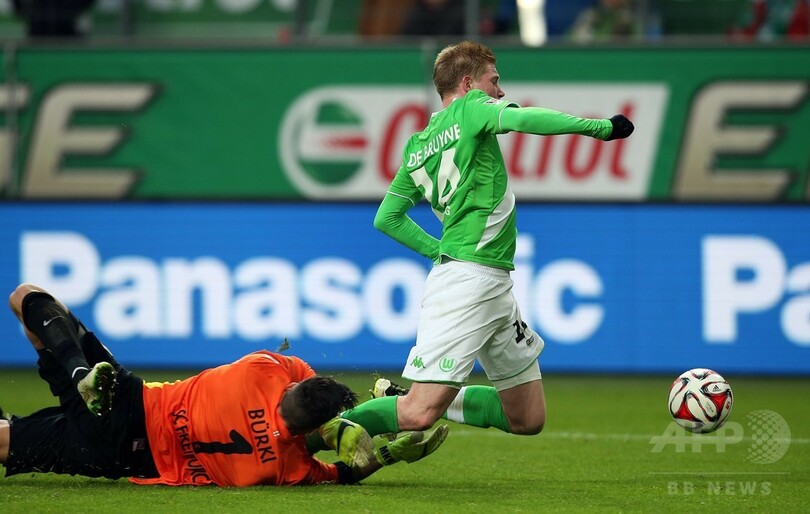 ボルフスブルクはケビン・デ・ブルイネ(Kevin de Bruyne)がチームをけん引する活躍を見せた。チェルシー(Chelsea)で先発の座を確保できなかったデ・ブルイネだが、前半19分に先制点をもたらした。