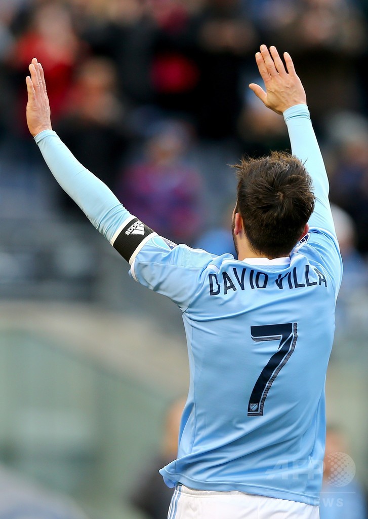 本拠地開幕戦となったNYCFCは、前半にダビド・ビジャ(David Villa)が先制点を決めると、後半にパトリック・マリンズ(Patrick Mullins)が追加点を挙げた。(c)AFP