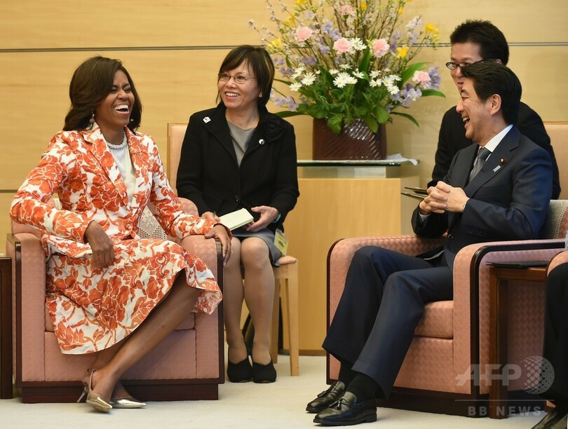 【3月19日 AFP】来日中のミシェル・オバマ(Michelle Obama)米大統領夫人は19日、都内の首相官邸で安倍晋三(Shinzo Abe)首相と会談した。