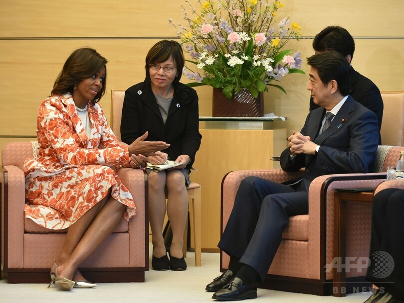【3月19日 AFP】来日中のミシェル・オバマ(Michelle Obama)米大統領夫人は19日、都内の首相官邸で安倍晋三(Shinzo Abe)首相と会談した。