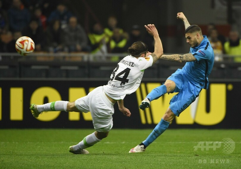 【3月20日 AFP】サッカーヨーロッパリーグ2014-15(UEFA Europa League 2014-15)は19日、決勝トーナメント2回戦の第2戦が各地で行われ、インテル(Inter Milan)は1-2でVfLボルフスブルク(VfL Wolfsburg)に敗れ、2戦合計2-5で敗退した。