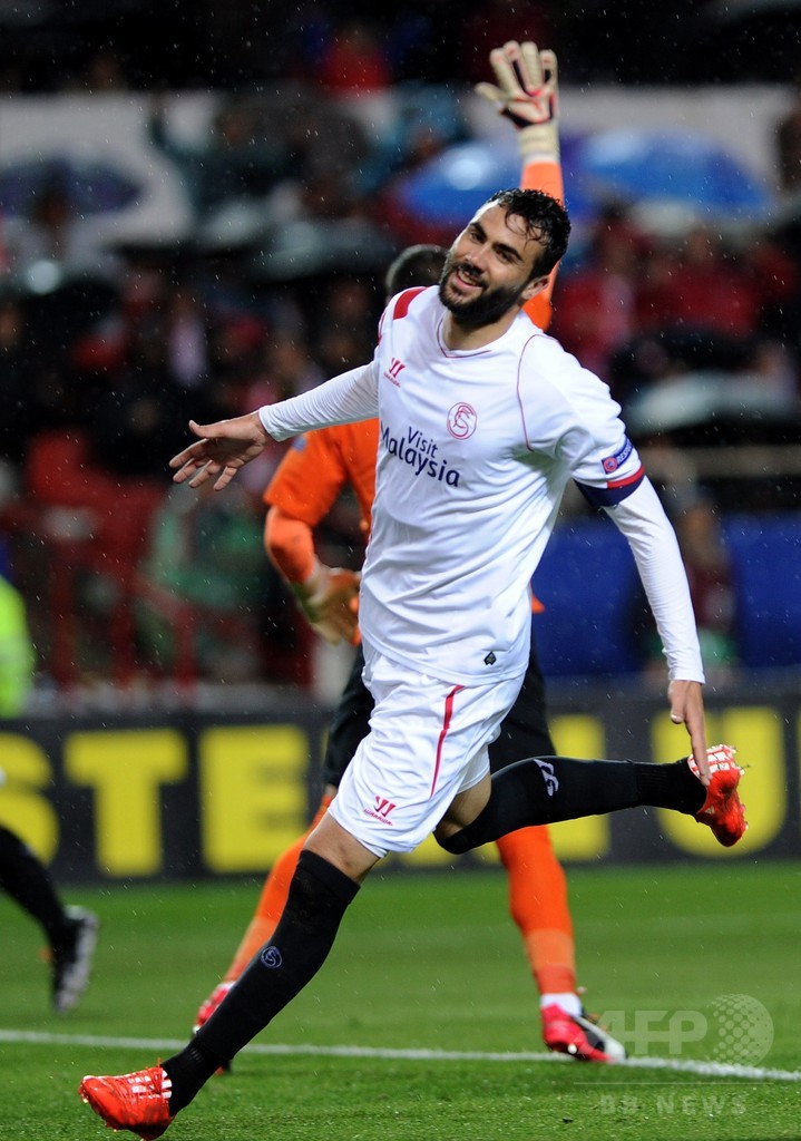 本拠地での試合に臨んだセビージャは、後半24分にビセンテ・イボラ(Vicente Iborra)の得点で先制すると、その4分後にジオバニ・ドス・サントス(Giovani dos Santos)に同点ゴールを許したものの、迎えた同38分にデニス・スアレス(Denis Suarez)が決勝点を決めた。(c)AFP