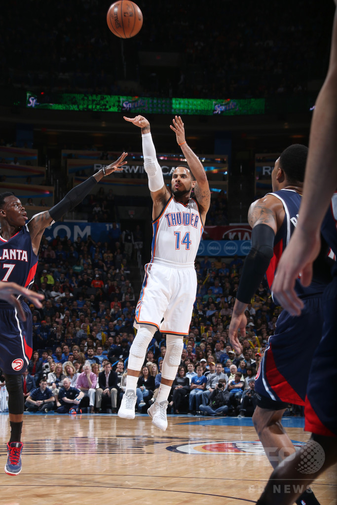 【3月21日 AFP】14-15NBAは20日、各地で試合が行われ、ラッセル・ウエストブルック(Russell Westbrook)が今季9度目のトリプルダブルを記録したオクラホマシティ・サンダー(Oklahoma City Thunder)が、123-115でイースタンカンファレンス首位のアトランタ・ホークス(Atlanta Hawks)に勝利した。