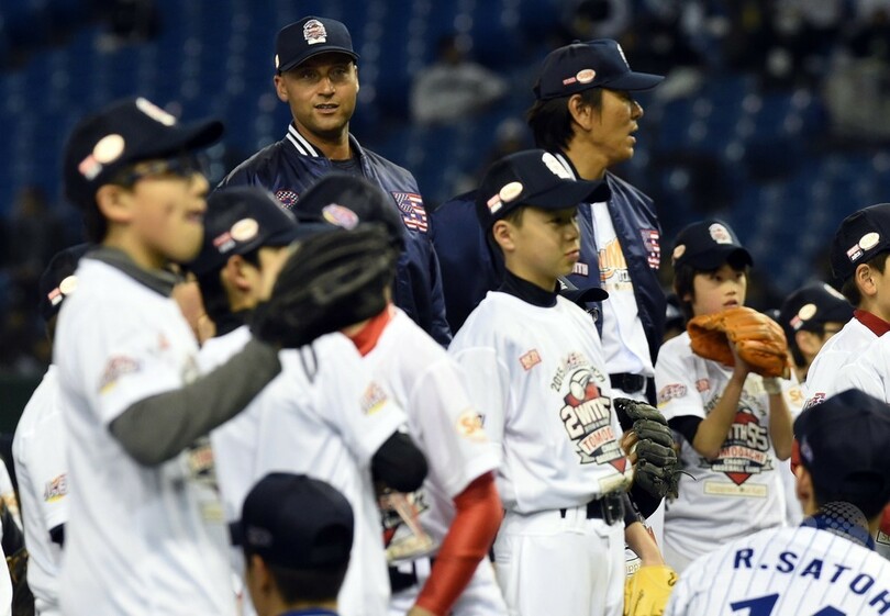 松井氏とジーター氏、東京ドームで野球教室