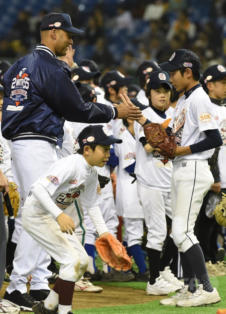 【3月22日 AFP】米大リーグ(MLB)のニューヨーク・ヤンキース(New York Yankees)で一緒にプレーした松井秀喜(Hideki Matsui)氏とデレク・ジーター(Derek Jeter)氏が21日、東京ドーム(Tokyo Dome stadium)で開催された東日本大震災で被災した子どもたちを支援するイベント「2015トモダチチャリティベースボールゲーム(Tomodachi Charity Baseball Game)」に参加し、野球教室を開いた。(c)AFP