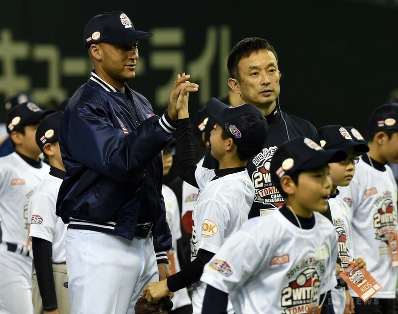 松井氏とジーター氏、東京ドームで野球教室