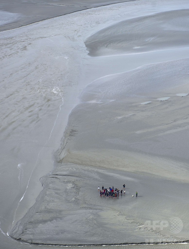 仏モンサンミッシェルに「世紀の大潮」、過去最多の3万人