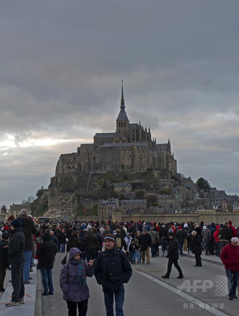【3月22日 AFP】(一部更新)フランス北西部ノルマンディー(Normandy)地方の観光名所モンサンミッシェル(Mont Saint-Michel)に21日、「世紀の大潮」を見物しようと過去最多のおよそ3万人が押し寄せた。