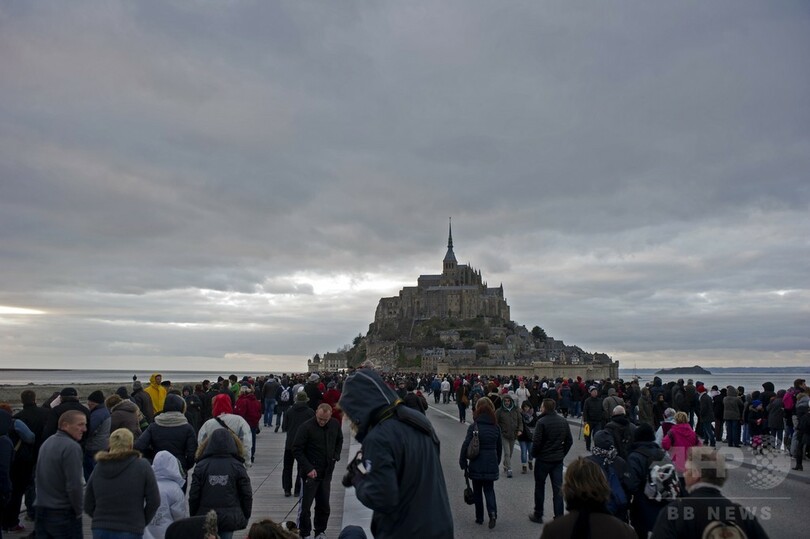 仏モンサンミッシェルに「世紀の大潮」、過去最多の3万人