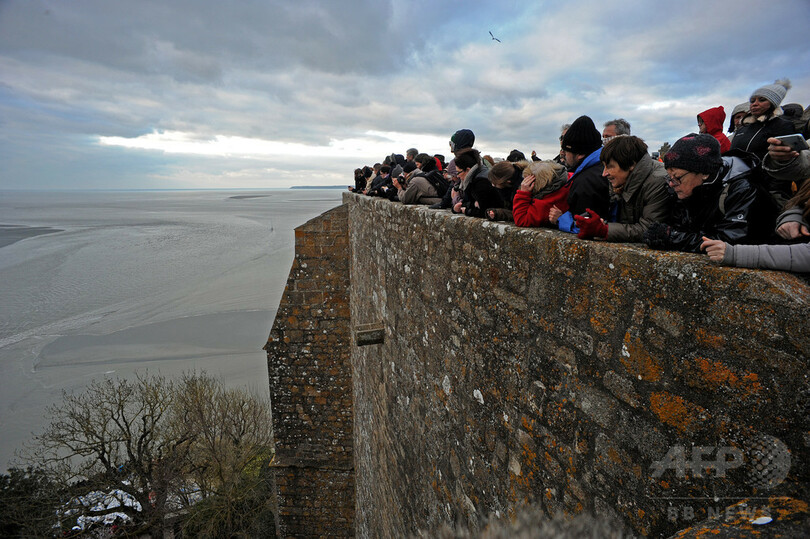 【3月22日 AFP】(一部更新)フランス北西部ノルマンディー(Normandy)地方の観光名所モンサンミッシェル(Mont Saint-Michel)に21日、「世紀の大潮」を見物しようと過去最多のおよそ3万人が押し寄せた。