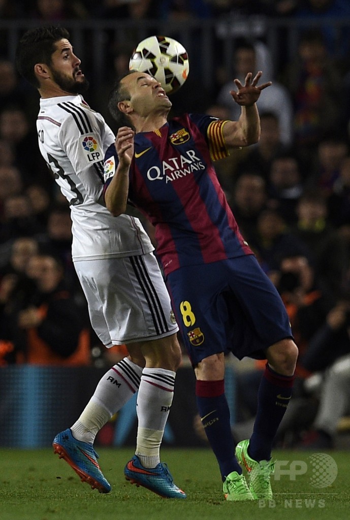 バルセロナはリオネル・メッシ(Lionel Messi)のFKからジェレミ・マシュー(Jeremy Mathieu)のヘディングシュートで先制したが、レアルもクリスティアーノ・ロナウド(Cristiano Ronaldo)が批判の声を黙らせる同点ゴールを決め、前半は1-1で折り返した。