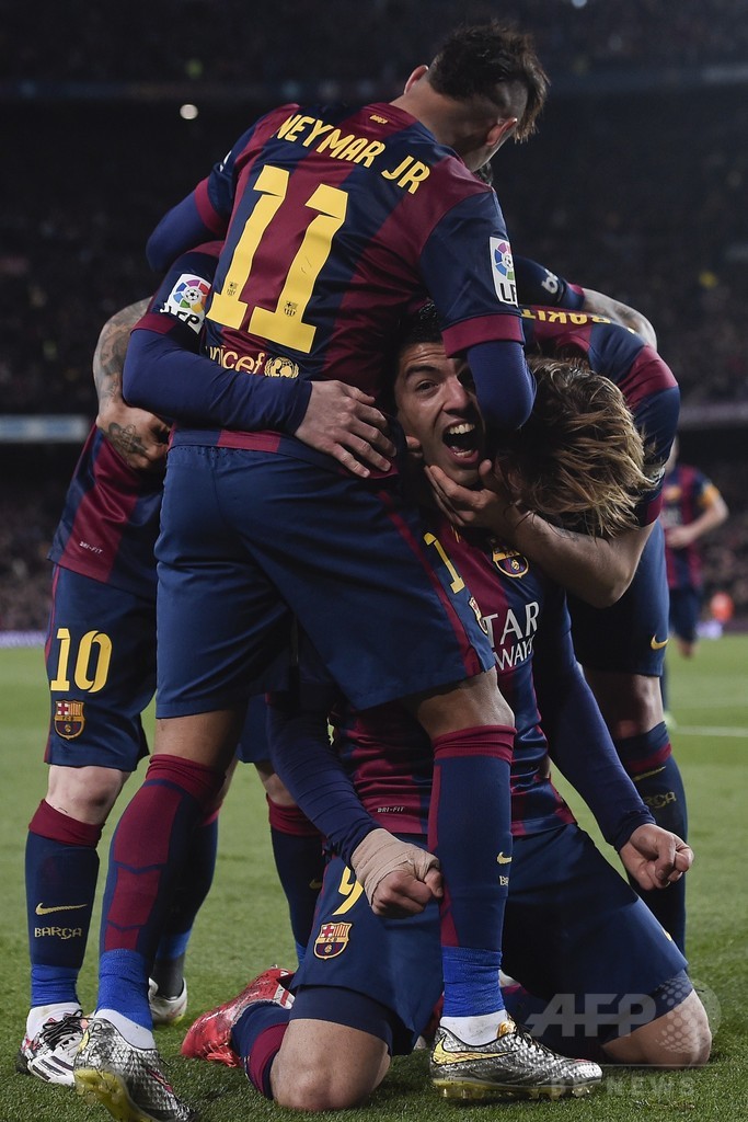 【3月23日 AFP】14-15スペイン1部リーグは22日、第28節の試合が行われ、FCバルセロナ(FC Barcelona)はルイス・スアレス(Luis Suarez)の素晴らしい個人技から決勝点を奪い、レアル・マドリード(Real Madrid)に2-1で勝利し、勝ち点4差をつけて首位を守った。