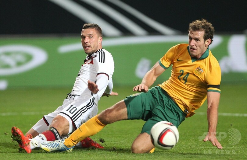 世界王者のドイツは、途中出場のルーカス・ポドルスキー(Lukas Podolski)のゴールで、アジア王者オーストラリアとの一戦を引き分けに持ち込んだ。