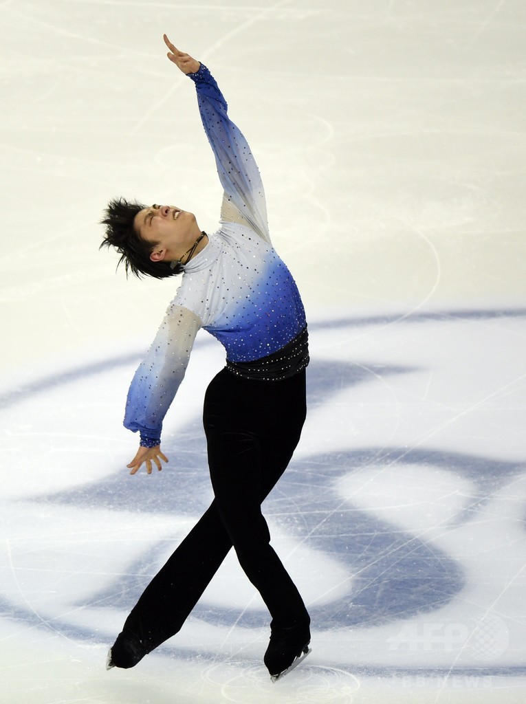 羽生は、日本で行われた昨年大会からの連覇を目指し、28日のフリースケーティング(FS)に臨む。(c)AFP/Neil CONNOR