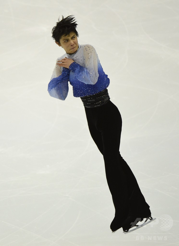 羽生は、日本で行われた昨年大会からの連覇を目指し、28日のフリースケーティング(FS)に臨む。(c)AFP/Neil CONNOR